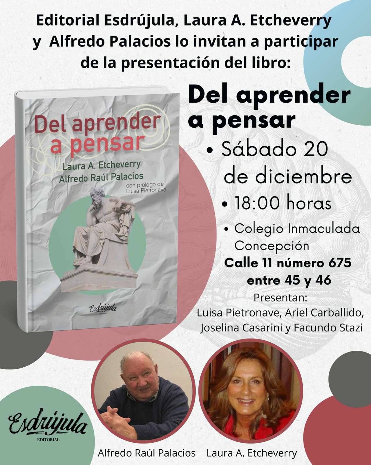 El sábado asistí a la presentación del libro “Del aprender a pensar”, escrito por mis amigos Laura Etcheverry y Alfredo Palacios, publicado por Editorial Esdrújula, que se realizó en el bello auditorio del Colegio Inmaculada Concepción de La Plata. Fue una verdadera fiesta, por varios motivos. En primer lugar, el reencuentro con muchos docentes de “Eureka”, el “Instituto de Educación del Pensamiento”, que Laura y Alfredo capitanearon durante 3 décadas. También había ex alumnos, ya adultos, que no querían perderse la oportunidad de volver a ver a los hacedores de ese experimento educativo tan novedoso y exitoso, en el que se formaron decenas de educadores y aprendieron y crecieron cientos de niños. ¿Qué fue Eureka? Mis tres hijos asistieron a ese mágico espacio, y yo tuve la oportunidad de dictar un par de módulos de teatro, para maestras de nivel inicial (jardín de infantes) y para adolescentes. Eureka los marcó y me marcó. En contraste con la educación tradicional, ahí se estimulaba a los chicos a desarrollar un pensamiento crítico, a relacionar todas las áreas del conocimiento, a jugar a aprender y a aprender jugando, a descubrir, inventar, imaginar, fantasear, explorando con la curiosidad y el entusiasmo que les es natural y que la escuela desaprovecha y-lo que es peor- anula. Si bien Eureka cerró sus puertas debido a la pandemia, indudablemente sembró semillas que siguieron floreciendo por doquier. Su legado en los docentes, niños y adolescentes que pasaron por ahí sigue intacto. Y nosotros, los padres, estaremos siempre agradecidos a Laura y a Alfredo por haberse arriesgado a ir contracorriente y desafiar lo establecido. Abrieron caminos. ¡Gracias totales, Eureka!