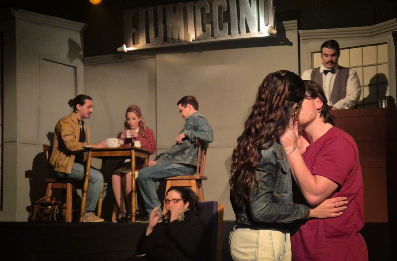 Enorme desafío el que asumió María Pascual, autora y directora del musical “Fiumiccino”, al frente del grupo “Ya que estamos”, que vimos el domingo pasado en “Doble T”, La Plata, cálido espacio en el que también se puede cenar.  Una obra cuya puesta es sumamente compleja, ya que transcurre en dos planos espaciales y temporales.